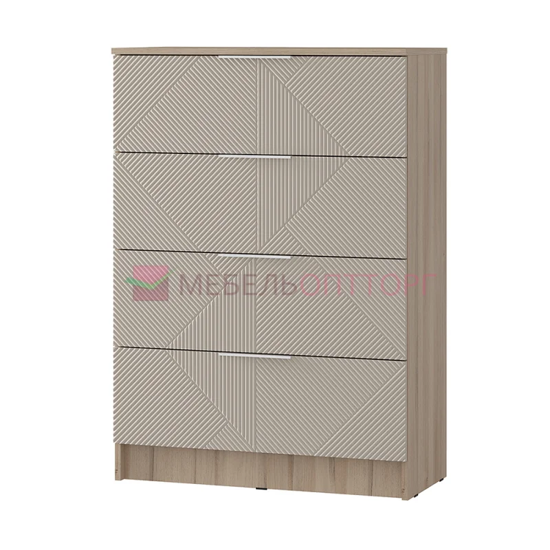 Комод "Эмилия" КМ-02 обладает четырьмя просторными ящиками для одежды и белья. Благодаря эргономичным фасадам открывание ящиков становится удобным и лёгким.