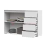 Комод Хелен КМ 06 – замечательная модель для обустройства детской, спальни или гостиной. Система хранения разделена на два закрытых отсека: 4 выдвижных ящика справа и тумба с одной полкой ЛДСП слева. Дизайн модели спроектирован мининималистично, на фасаде отсутствуют ручки, функцию ручек выполняет удлиненный фасад.