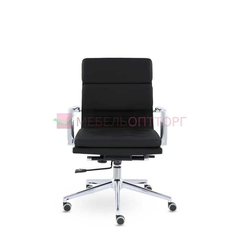 Кресло руководителя в современном металлическом каркасе. Комфорт создается благодаря мягким элементам спинки и сиденья. Зеркальный хромированный каркас и узкая крестовина задают современный стиль креслу. Кресло отлично смотрится в строгих и открытых кабинетах.