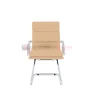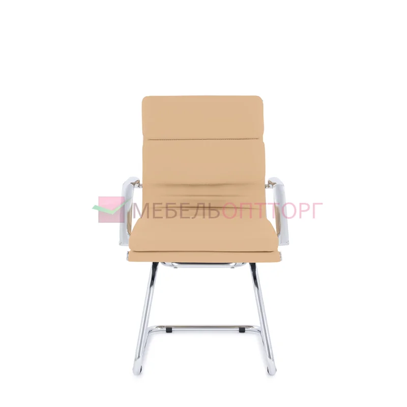 Кресло руководителя в современном металлическом каркасе. Комфорт создается благодаря мягким элементам спинки и сиденья, хромированным полозьям. Кресло отлично смотрится в строгих и открытых кабинетах.