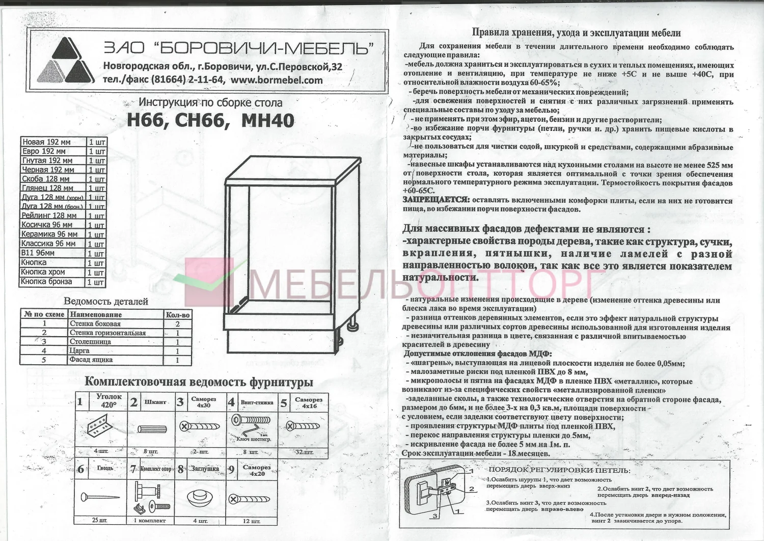 ВНИМАНИЕ, высота кухонного модуля фабрики Боровичи указана указана с учетом ножек 15 см. Глубина модуля указывается без учета столешницы. Модули цоколем не комплектуются, цоколь заказывается отдельно.