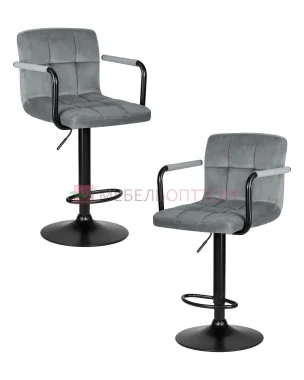 Набор 2 шт Стул барный KRUGER ARM BLACK, серый велюр (MJ9-75)