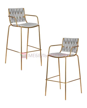 Набор 2 шт Стул барный MILLER GOLD, cветло-серый велюр (135-37)