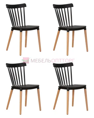 Набор 4 шт Стул обеденный THEO, ножки светлый бук, цвет черный (B-03)