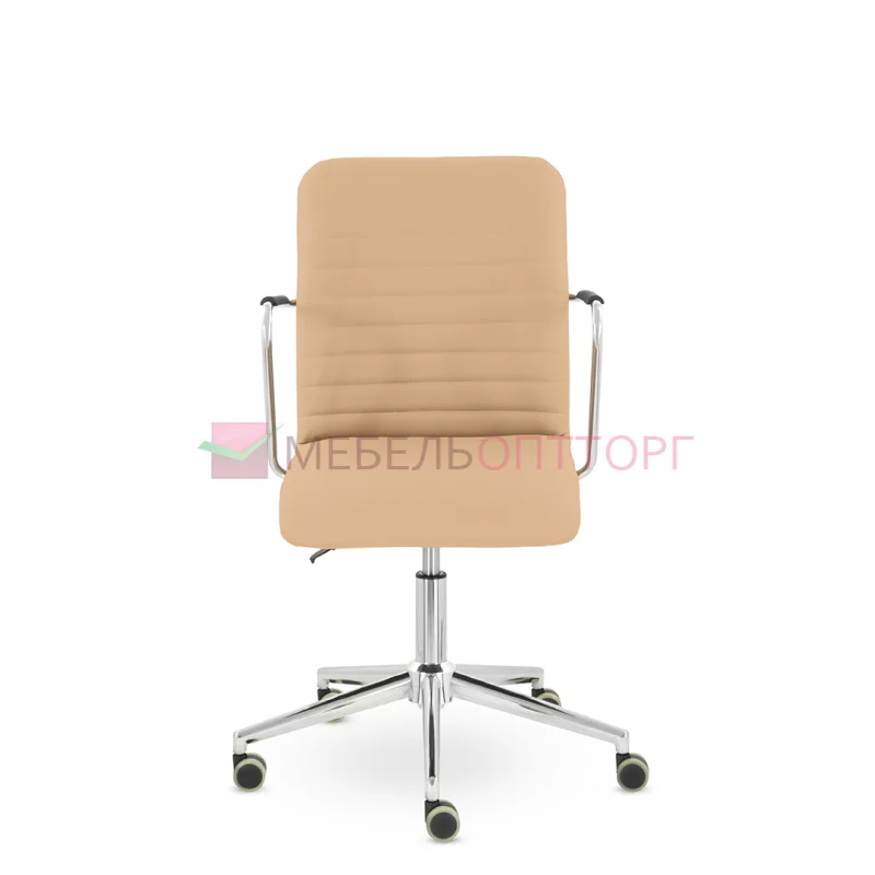 Уникальный каркас из металла и узкие хромированные подлокотники с небольшими пластиковыми накладками придают конструкции легкость и прочность. Горизонтальные строчки на спинке подчеркивают элегантный и современный вид.