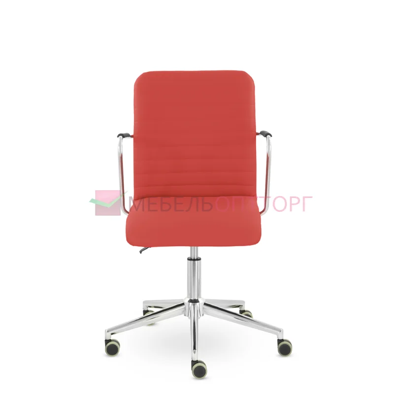 Уникальный каркас из металла и узкие хромированные подлокотники с небольшими пластиковыми накладками придают конструкции легкость и прочность. Горизонтальные строчки на спинке подчеркивают элегантный и современный вид.