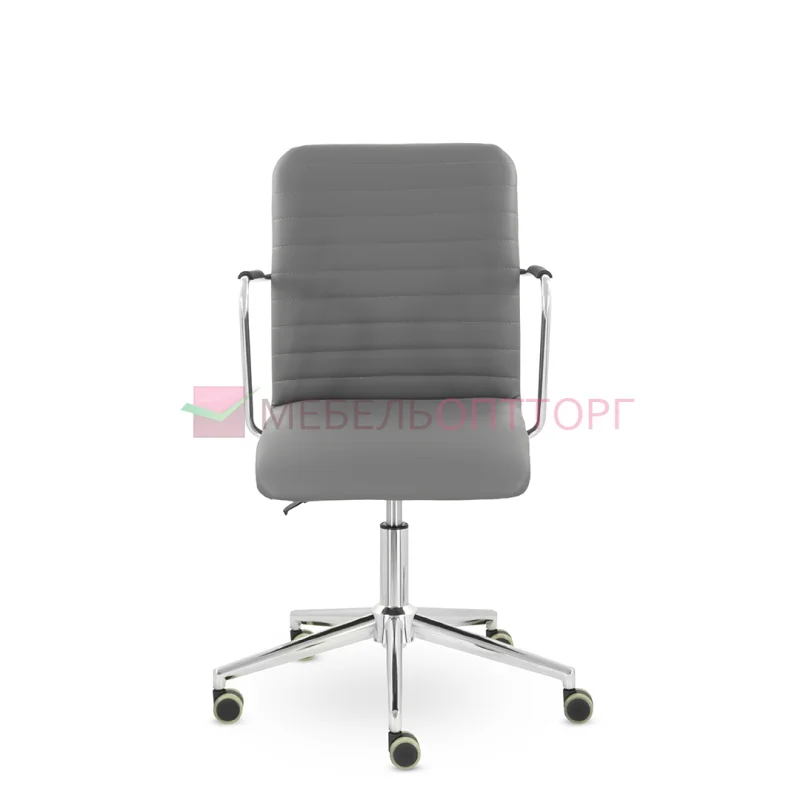 Уникальный каркас из металла и узкие хромированные подлокотники с небольшими пластиковыми накладками придают конструкции легкость и прочность. Горизонтальные строчки на спинке подчеркивают элегантный и современный вид.