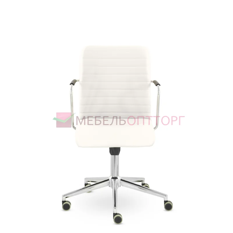 Уникальный каркас из металла и узкие хромированные подлокотники с небольшими пластиковыми накладками придают конструкции легкость и прочность. Горизонтальные строчки на спинке подчеркивают элегантный и современный вид. Хромированная крестовина выдерживает до 120 кг.