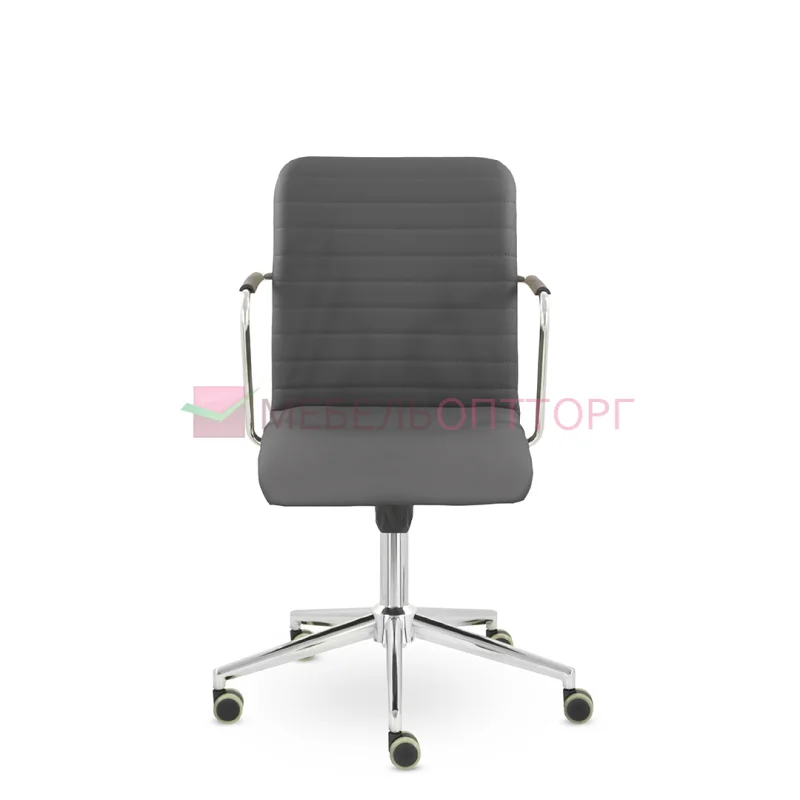Уникальный каркас из металла и узкие хромированные подлокотники с небольшими пластиковыми накладками придают конструкции легкость и прочность. Горизонтальные строчки на спинке подчеркивают элегантный и современный вид. Хромированная крестовина выдерживает до 120 кг.