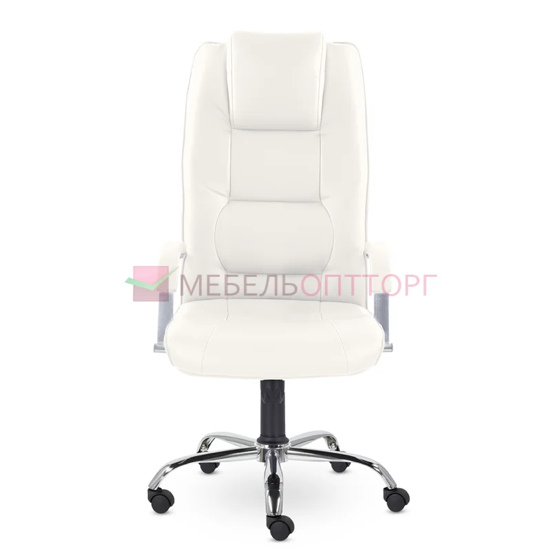 Грациозное кресло руководителя с ярко выраженным мягким подголовником. Спинка и сиденье имеют горизонтальные прострочки, делящие их на квадраты. Хромированные подлокотники с мягкими накладками. Кресло стоит на хромированной крестовине, максимальная нагрузка 150 кг.