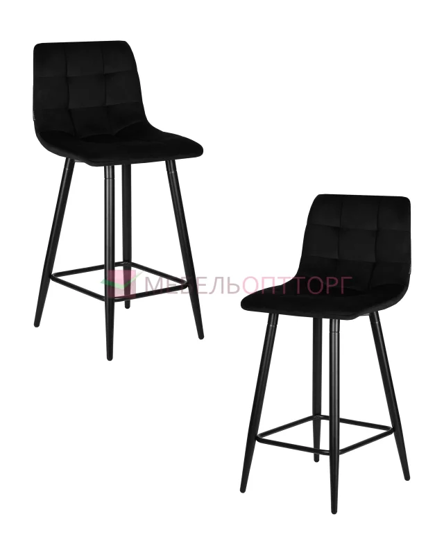 | Набор 2 шт Стул полубарный OLIVIA, черные матовые ножки, черный велюр (108-77) / Стул