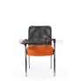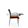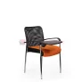 Кресло для посетителя изготавливается с мягким сиденьем, оригинальной спинкой, выполненной из сетчатой ткани и пластиковыми подлокотниками. К креслу прилагается столик, выполненный из пластика. Модель отлично подойдет для проведения конференций и форумов.