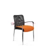 Кресло для посетителя изготавливается с мягким сиденьем, оригинальной спинкой, выполненной из сетчатой ткани и пластиковыми подлокотниками. Максимальная нагрузка 120 кг.