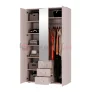 Трехстворчатый шкаф Белла имеет пять вместительных полок для белья с одной стороны и горизонтальную хромированную трубу с удобной полкой для головных уборов с другой.
