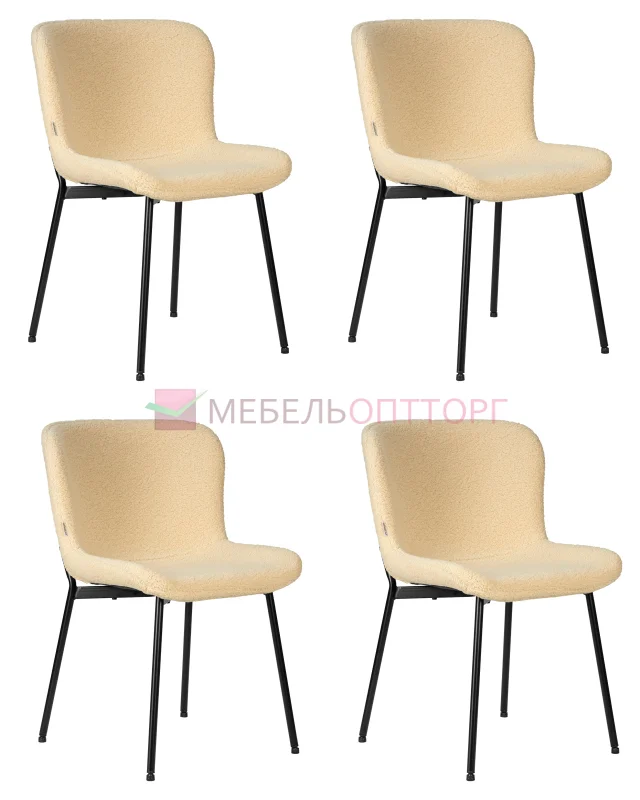 | | | Набор 4 шт Стул обеденный MILO, черные ножки, кремовый букле (UF992-02)