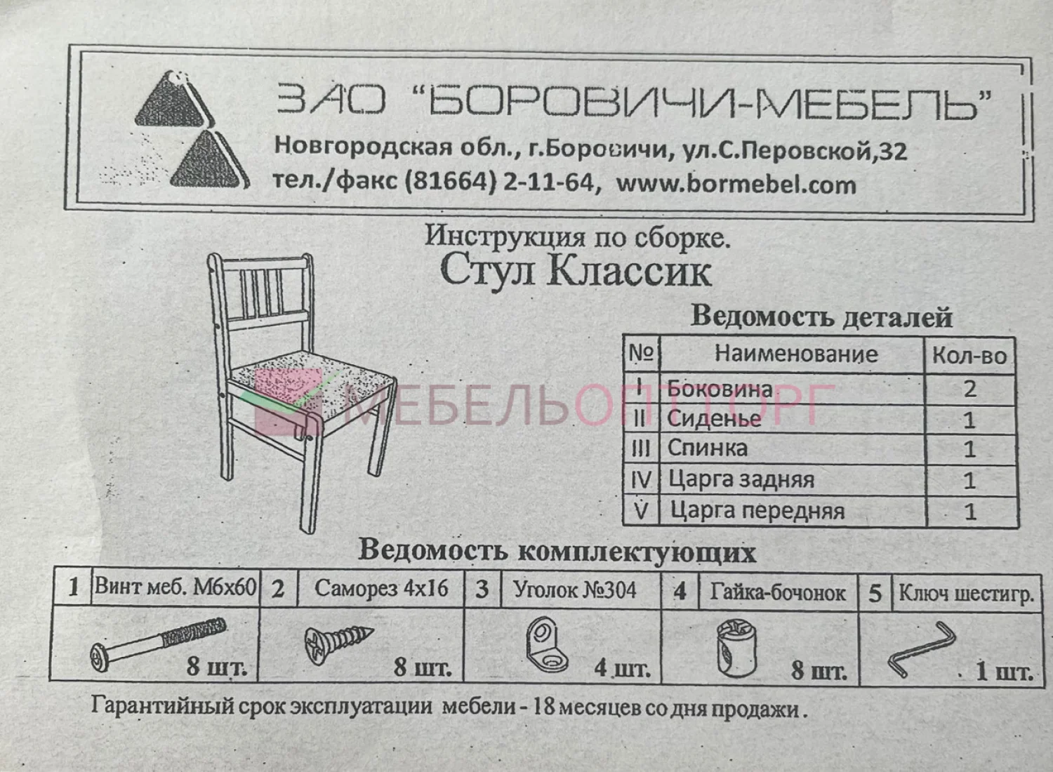 Стул Классик - сборка под ключ! Хотите купить мебель «Стул Классик» сейчас, но у вас нет такой суммы? Приобретайте его в кредит или рассрочку! Читайте честные отзывы про мебель «Стул Классик» фабрики Боровичи-Мебель.