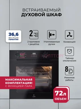 Духовой шкаф встраиваемый с режимом пара LEX EDP 080 BBL Steam