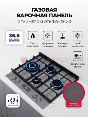 Варочная панель газовая с сенсорным таймером LEX GVG 646 T GR