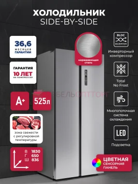 Холодильник двухкамерный отдельностоящий с инвертором LEX LSB525IXID