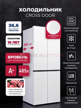 Холодильник трехкамерный отдельностоящий с инвертором LEX LCD450 white satin