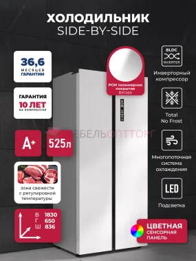 Холодильник двухкамерный отдельностоящий с инвертором LEX LSB525WHID