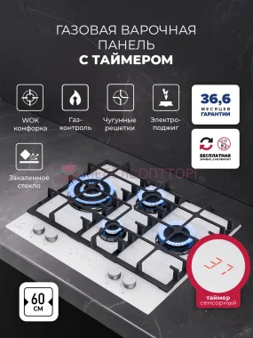 Варочная панель газовая с сенсорным таймером LEX GVG 646T WH