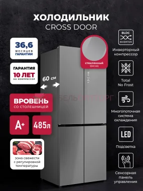 Холодильник трехкамерный отдельностоящий с инвертором LEX LCD450 steel point