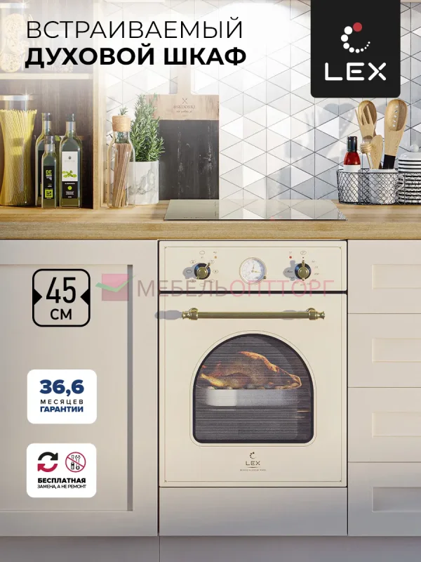 | | | Духовой шкаф встраиваемый LEX EDM 4573 С IV Light Белый антик / Электрический духовой шкаф