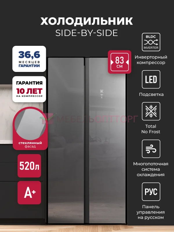 Добавить отзыв о товаре:Холодильник двухкамерный отдельностоящий с инвертором LEX LSB520SlGID