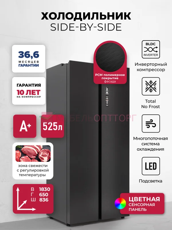 Описание Холодильник двухкамерный отдельностоящий с инвертором LEX LSB525BLXID