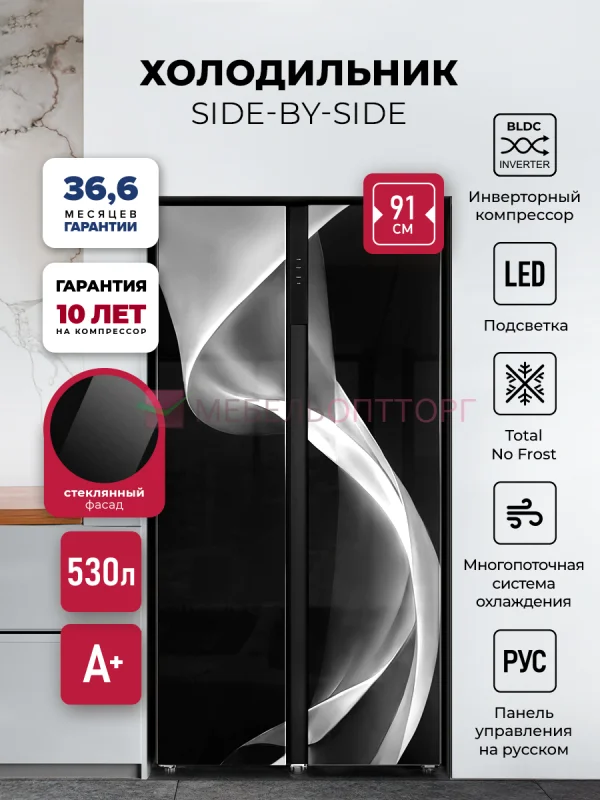 Двухкамерный холодильник LSB 530 вместит все вкусное и полезное. Fresh-зона и многопоточная система вентиляции обеспечат свежесть любого продукта, два контура охлаждения, панель управления и дисплей позволят точно контролировать температуру в каждом отделении. Для простоты эксплуатации модель имеет несколько предустановленных режимов работы: суперзаморозка и быстрое охлаждение, а также смарт-режим и поддержание температуры в течение нескольких часов, которое пригодится при неполадках с электричеством. Благодаря расположению дверей SIDE BY SIDE продукты в обеих камерах можно размещать на комфортных для вас уровнях. Технология Total No Frost делает уход за холодильником максимально легким, чтобы у вас было больше свободного времени, а мощный инверторный компрессор работает почти бесшумно.