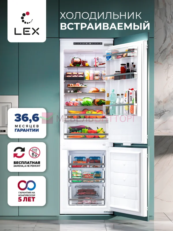 Добавить отзыв о товаре:Холодильник двухкамерный встраиваемый LEX LBI177.2D