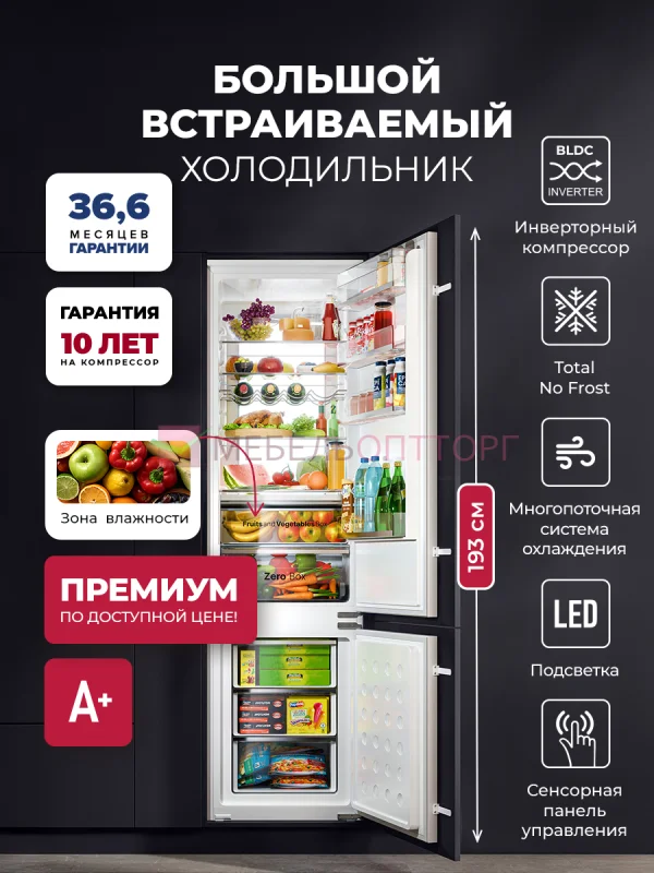 Добавить отзыв о товаре:Холодильник двухкамерный встраиваемый с инвертором LEX LBI193.3ID