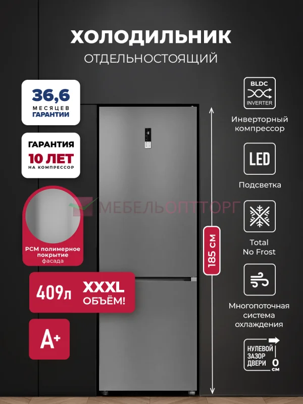 Описание Холодильник отдельностоящий с инвертором LEX LKB185GrIDMax