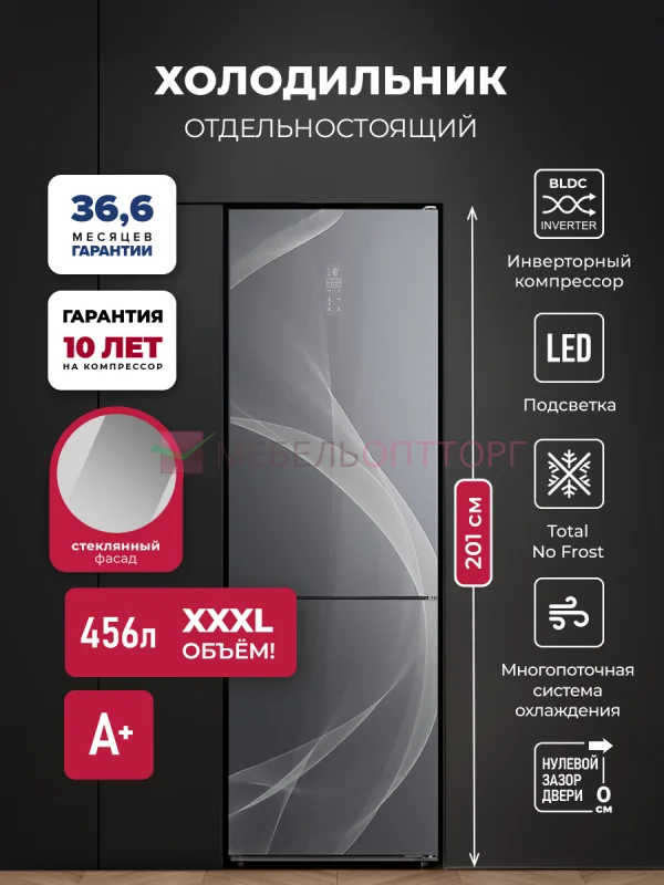 Добавить отзыв о товаре:Холодильник отдельностоящий с инвертором LEX LKB201GrGIDMax Wind