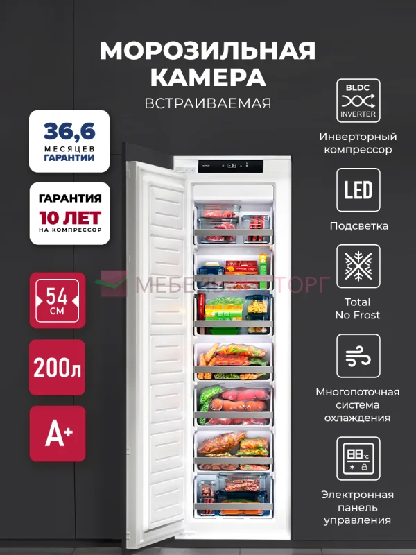 Описание Морозильная камера встраиваемая с инвертором LEX LBI177.4ID