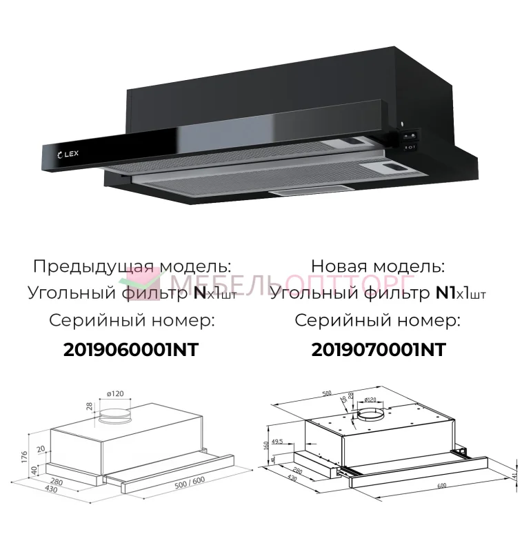 |  |  | Вытяжка кухонная встраиваемая LEX Hubble G 2M 600 Black /