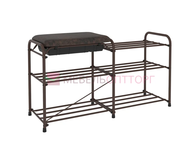 Описание Подставка для обуви Альфа-33 3-х полочная с сиденьем и ящиком (Коричневый)