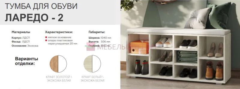 Описание Тумба для обуви Ларедо-2 (Дуб крафт белый/Белый кожзам)