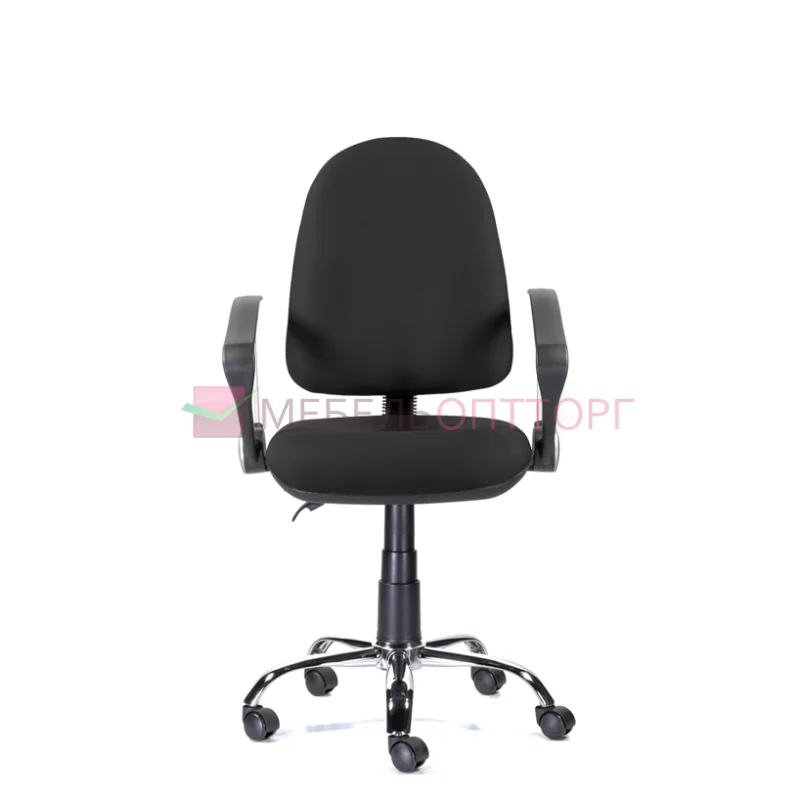 Качественное кресло традиционного дизайна, с особенностью в виде синхромеханизма, который позволяет одновременно регулировать угол наклона сиденья и спинки.