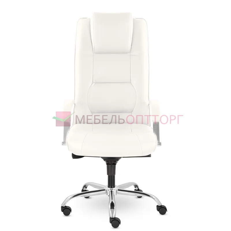 Грациозное кресло руководителя с ярко выраженным мягким подголовником. Спинка и сидение имеют горизонтальные прострочки, делящие их на квадраты. Хромированные подлокотники с мягкими накладками. Кресло стоит на хромированной крестовине, максимальная нагрузка которой 120 кг.