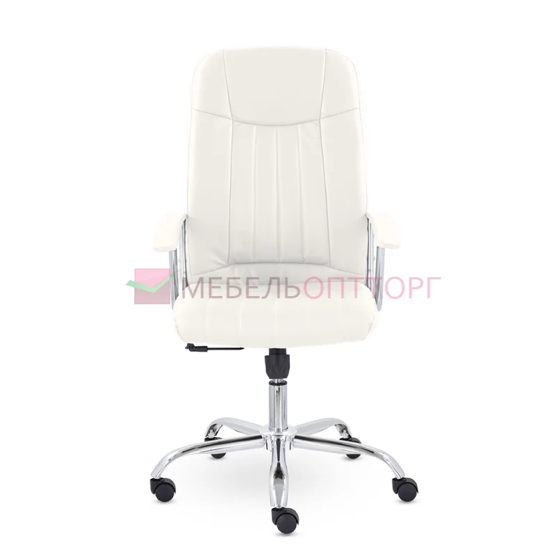 Кресло руководителя с мягкими увеличенными подушками. Широкая эргономичная спинка имеет две горизонтальные прострочки, которые отделяют подголовник от основной части спинки. Благодаря глубокому сиденью, в кресле будет удобно человеку среднего и высокого роста. Длинные хромированные подлокотники способствуют комфортной посадке в кресле. Максимальная нагрузка до 180 кг.