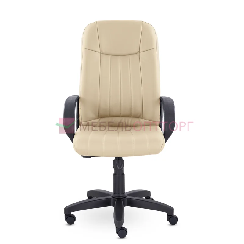 Кресло руководителя с мягкими увеличенными подушками. Широкая эргономичная спинка имеет две горизонтальные прострочки, которые отделяют подголовник от основной части спинки. Благодаря глубокому сиденью, в кресле будет удобно человеку среднего и высокого роста. Длинные пластиковые подлокотники способствуют комфортной посадке в кресле.