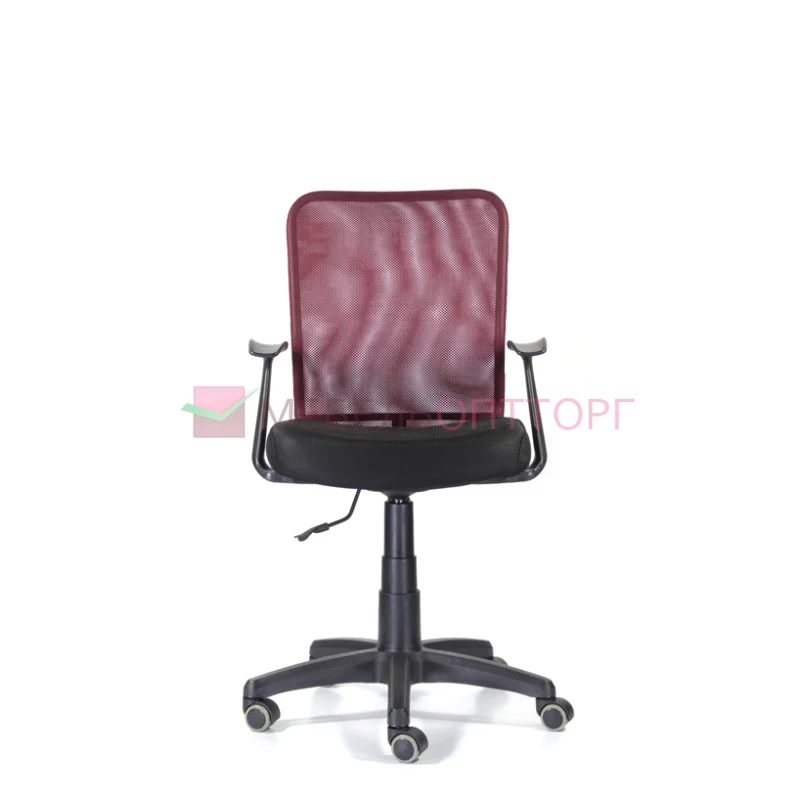 Кресло обладает широкой эргономичной спинкой, обтянутой сеткой, удвоенной мягкой подушкой сидения, которая обшита износостойкой тканью. Также кресло отличается своей компактностью и подойдет для небольших помещений. Т-образные подлокотники обеспечат поддержку рук.