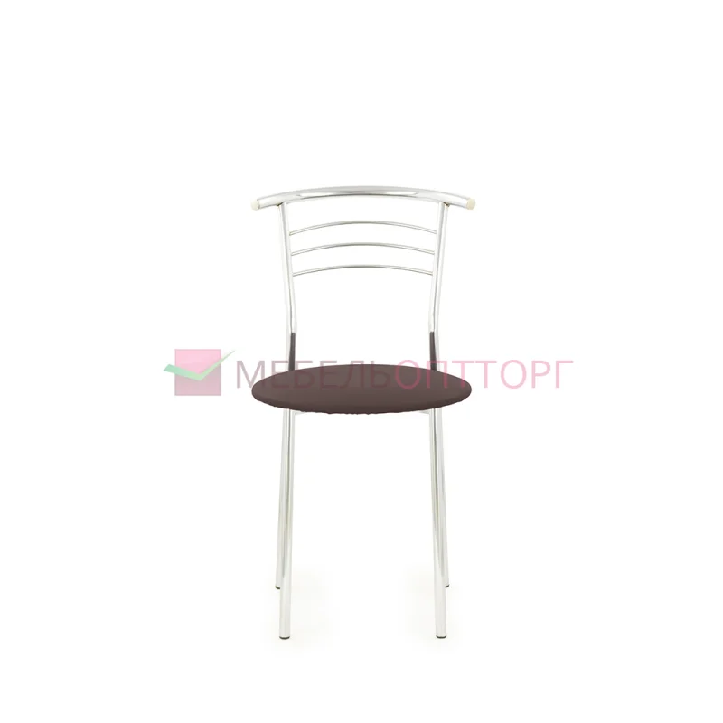 Стул с широким круглым сиденьем и удобной округлой хромированной спинкой. Простые, четкие линии силуэта и компактный размер позволяют ему хорошо смотреться в кухне, столовой, помещении небольшого кафе, в офисе.