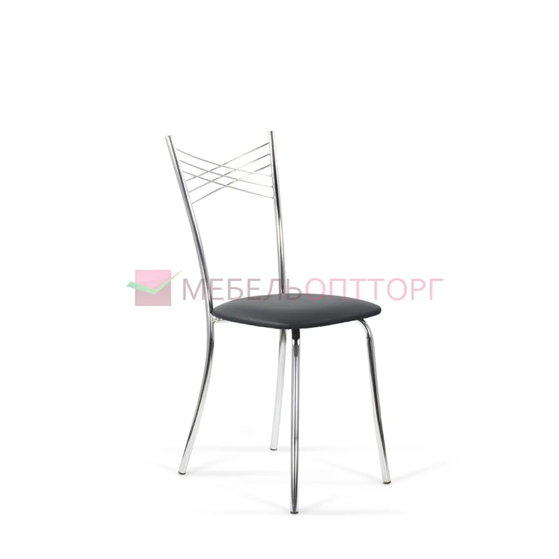 Воздушная модель стула имеет интересный дизайн спинки, представляющую собой крестообразное пресечение нескольких металлических нитей, образующих в центре маленькие ромбики. Каркас стула выполнен из хромированного металла